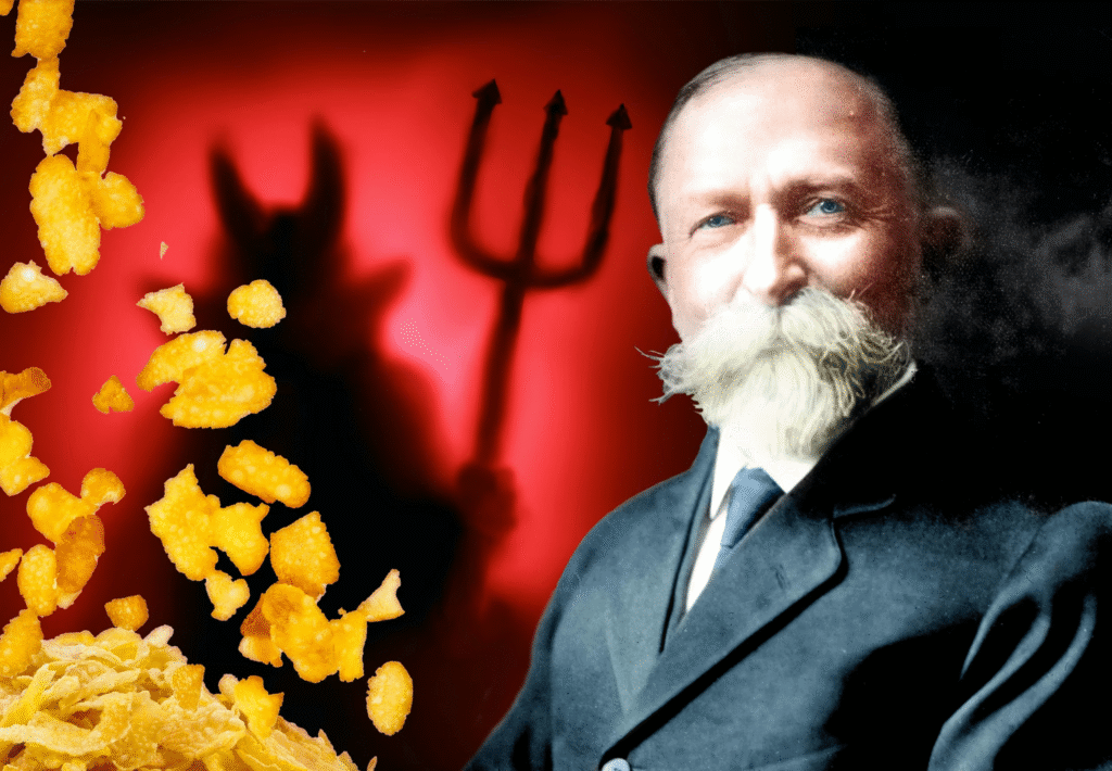 Así que Kellogg pensó: si le damos a la gente una mezcla de copos de maíz cocidos, aplastados, azucarados y sin grasa, los convertiremos en ciudadanos templados. Sin pulsiones. Sin deseo. Sumisos.